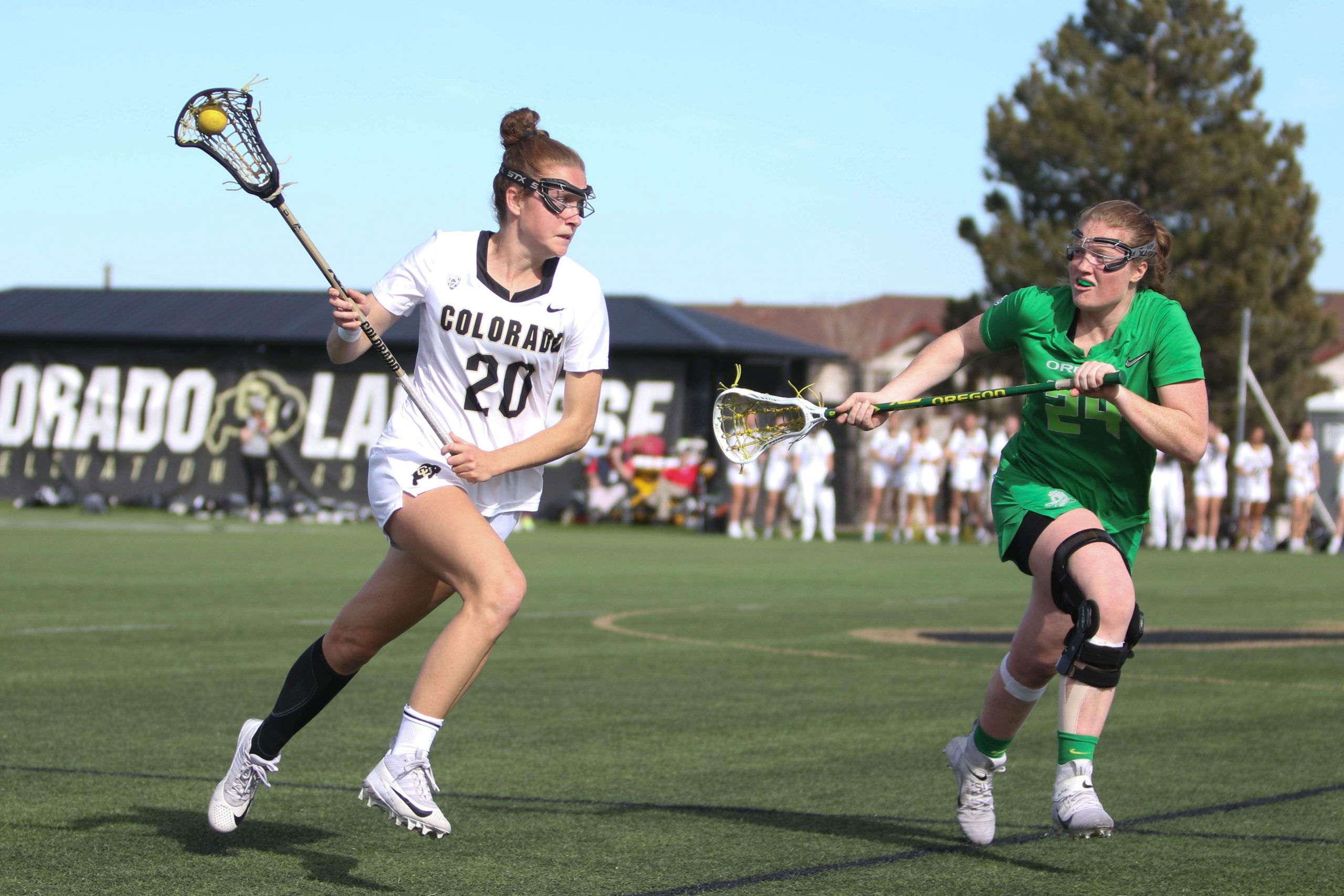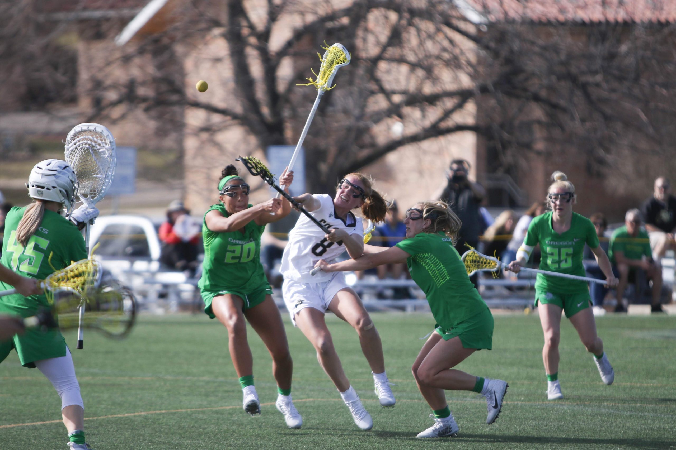 Following a tough loss to No. 14 Michigan in Ann Arbor, the University of Colorado Boulder women’s lacrosse team (2-2, 1-0 Pac-12) looked to bounce back Friday afternoon against Oregon at Kittredge Field in Boulder. The road has not been kind to the Buffs early in the season, dropping games to two top 15 opponents away from home. The No. 24 ranked Buffaloes recorded their second win of the season and their first conference win with a 21-5 over the Oregon Ducks.