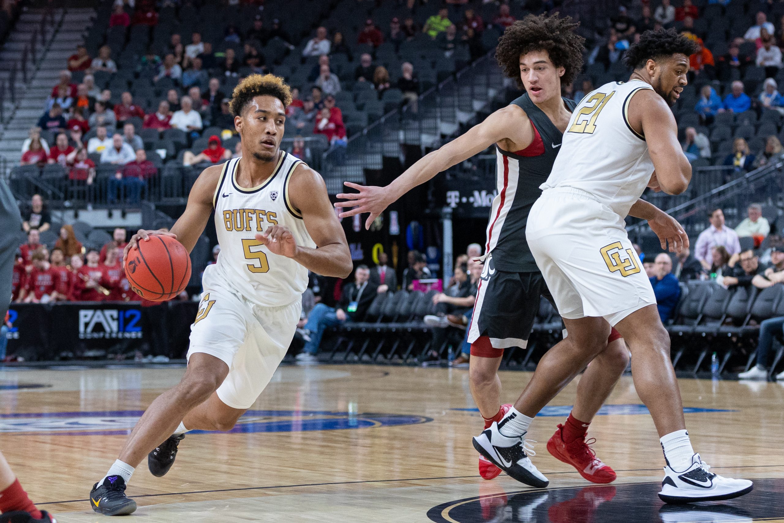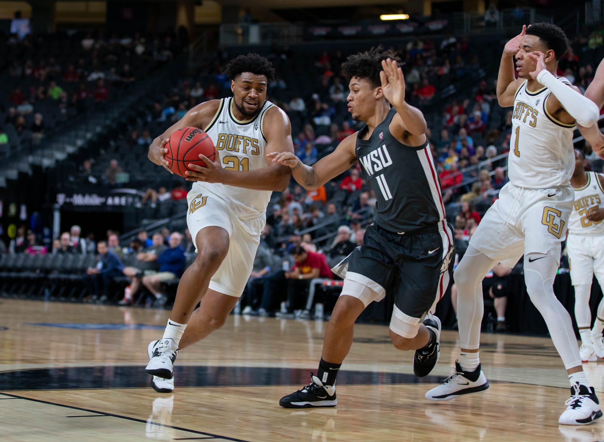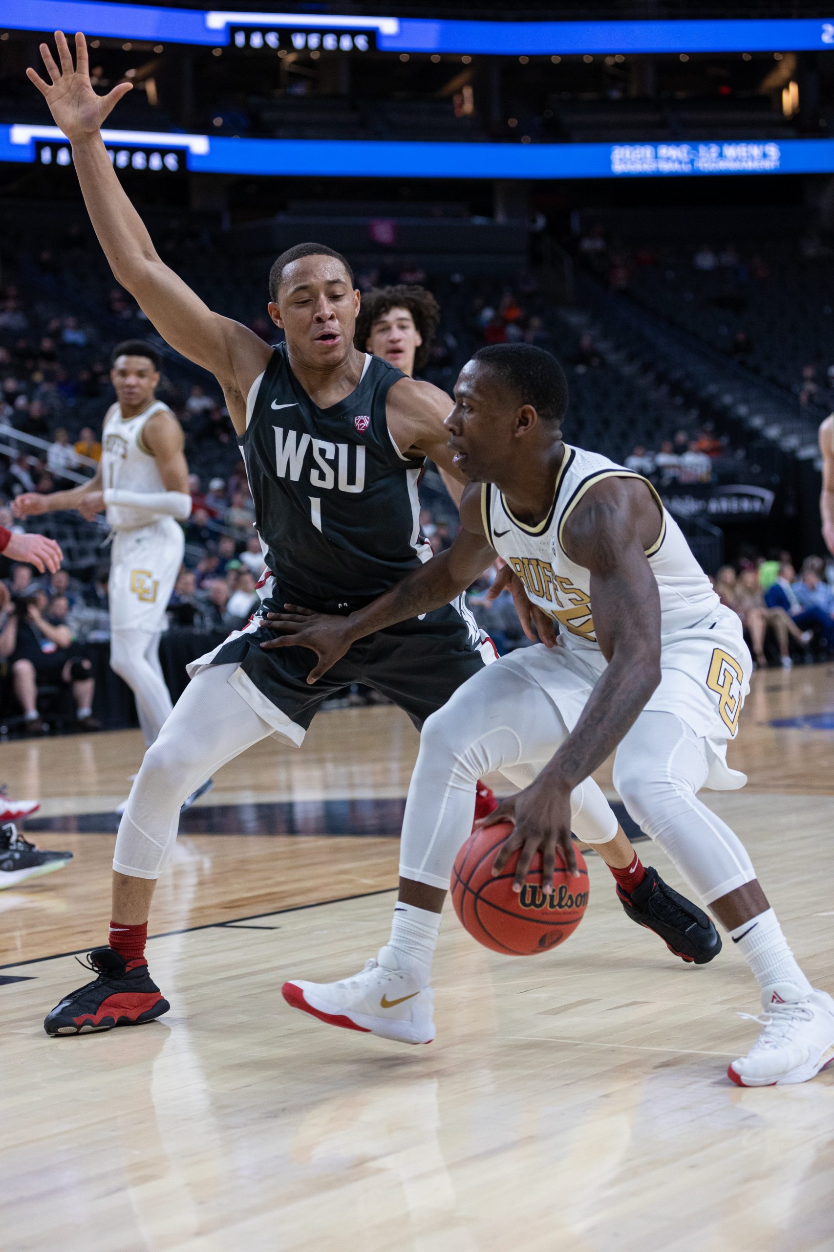The sixth seeded Colorado Buffaloes hosted eleventh seeded Washington State in the first round of the 2020 Pac-12 Men’s Basketball Tournament at T-Mobile Arena in Las Vegas Wednesday night. Following the postponement of the 2019-20 NBA season earlier in the day on Wednesday, the Pac-12 announced starting effective Thursday fans will no longer be allowed in the arena due to the spread of the COVID-19 coronavirus. Wednesday’s matchup between the Buffs and Cougars would be the last with fans in attendance.
