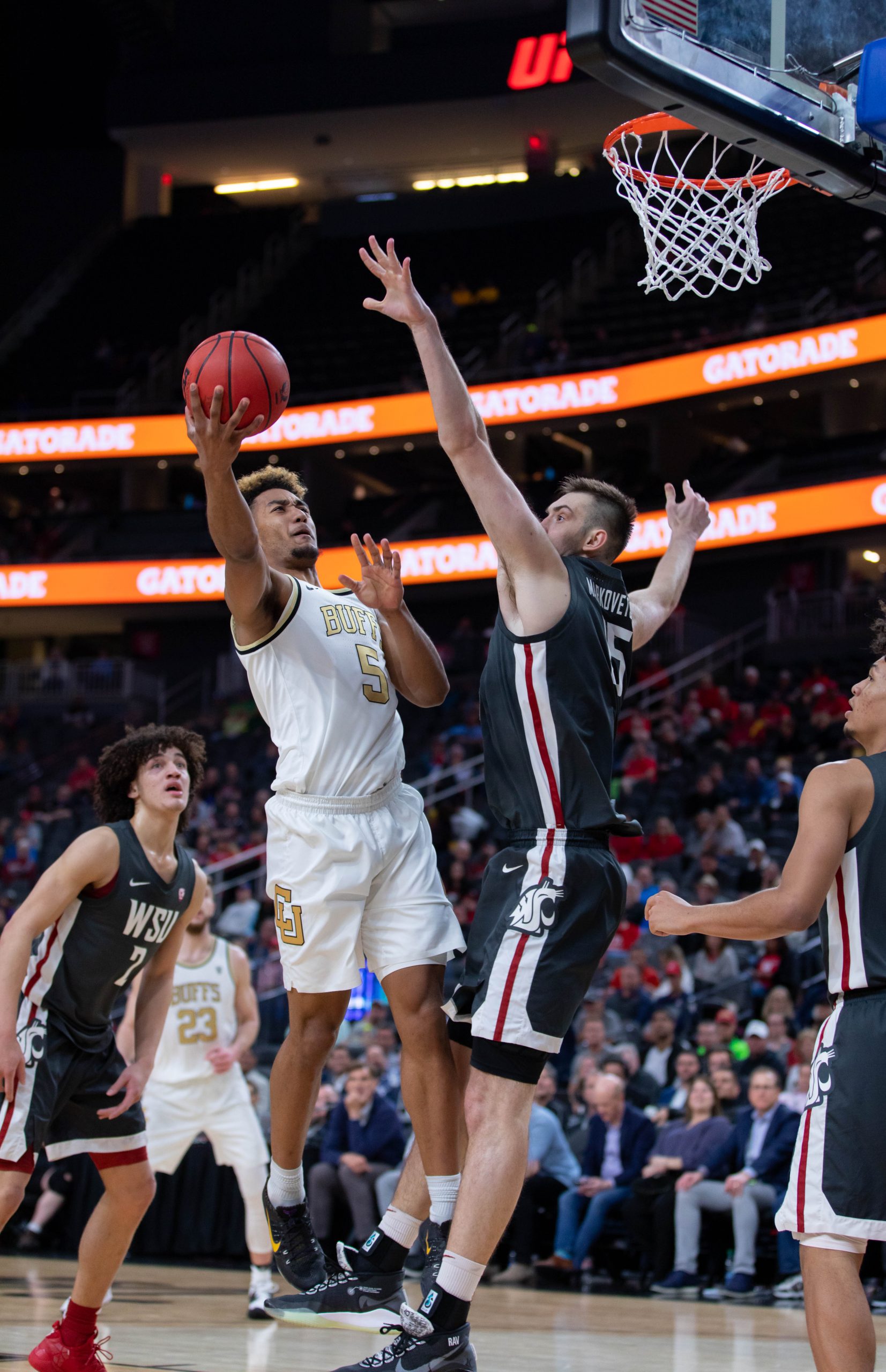 Junior guard McKinley Wright IV looked to provide a spark for the Buffaloes ripping the ball from a Washington State Cougar and sprinting down the floor eventually creating a scoring opportunity for junior guard D’Shawn Schwartz.