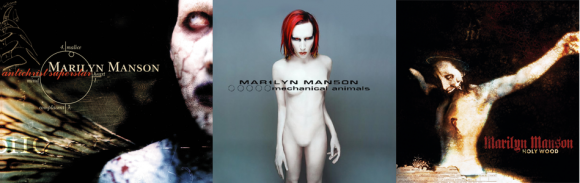 Cover arts for the trilogy; “Antichrist Superstar,” “Mechanical Animals” and “Holy Wood” (Marilyn Manson/Interscope/Nothing)