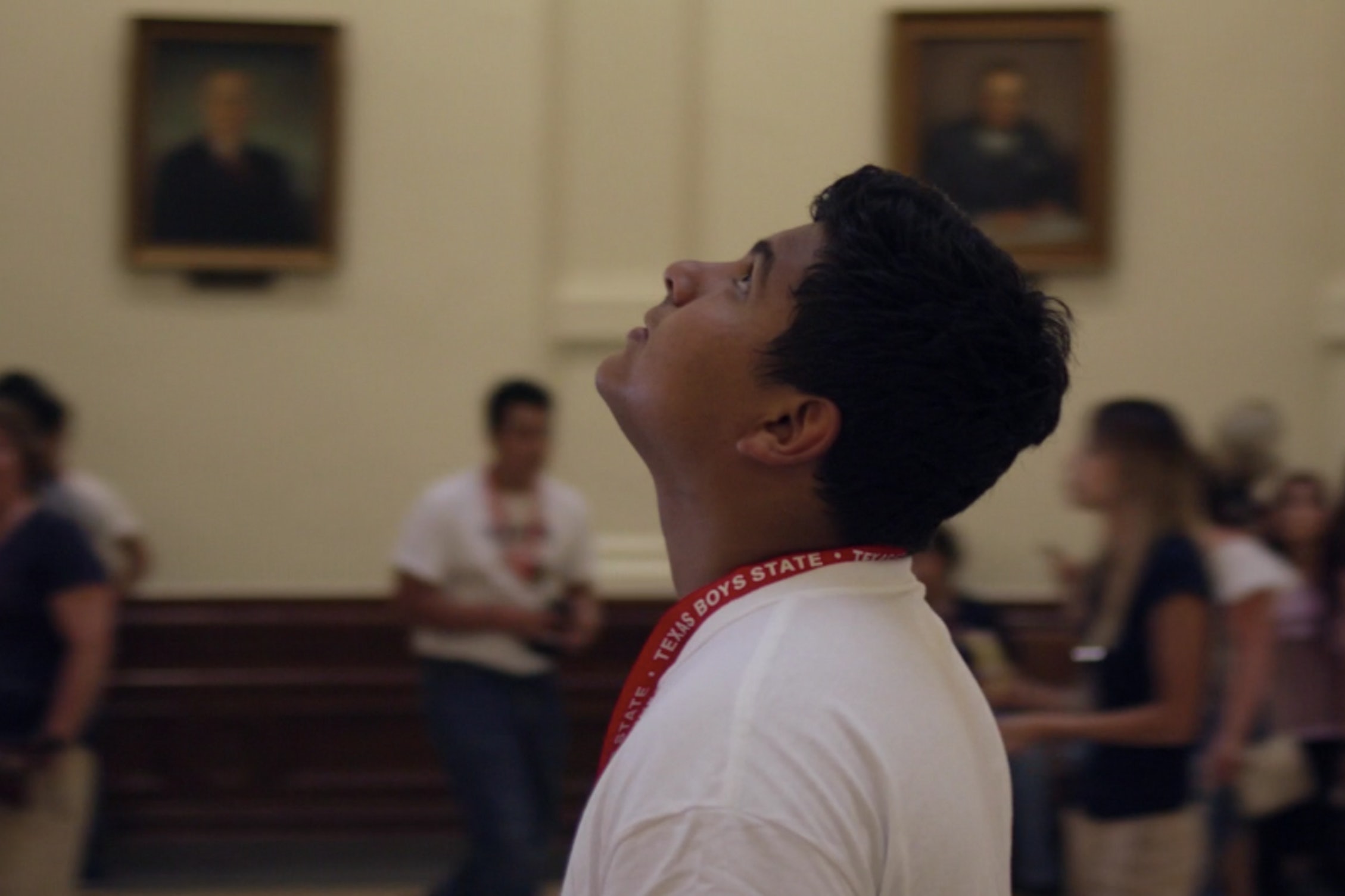 Candidate Steven Garza admires the Texas State Capitol in “Boys State.” (Courtesy of Apple)