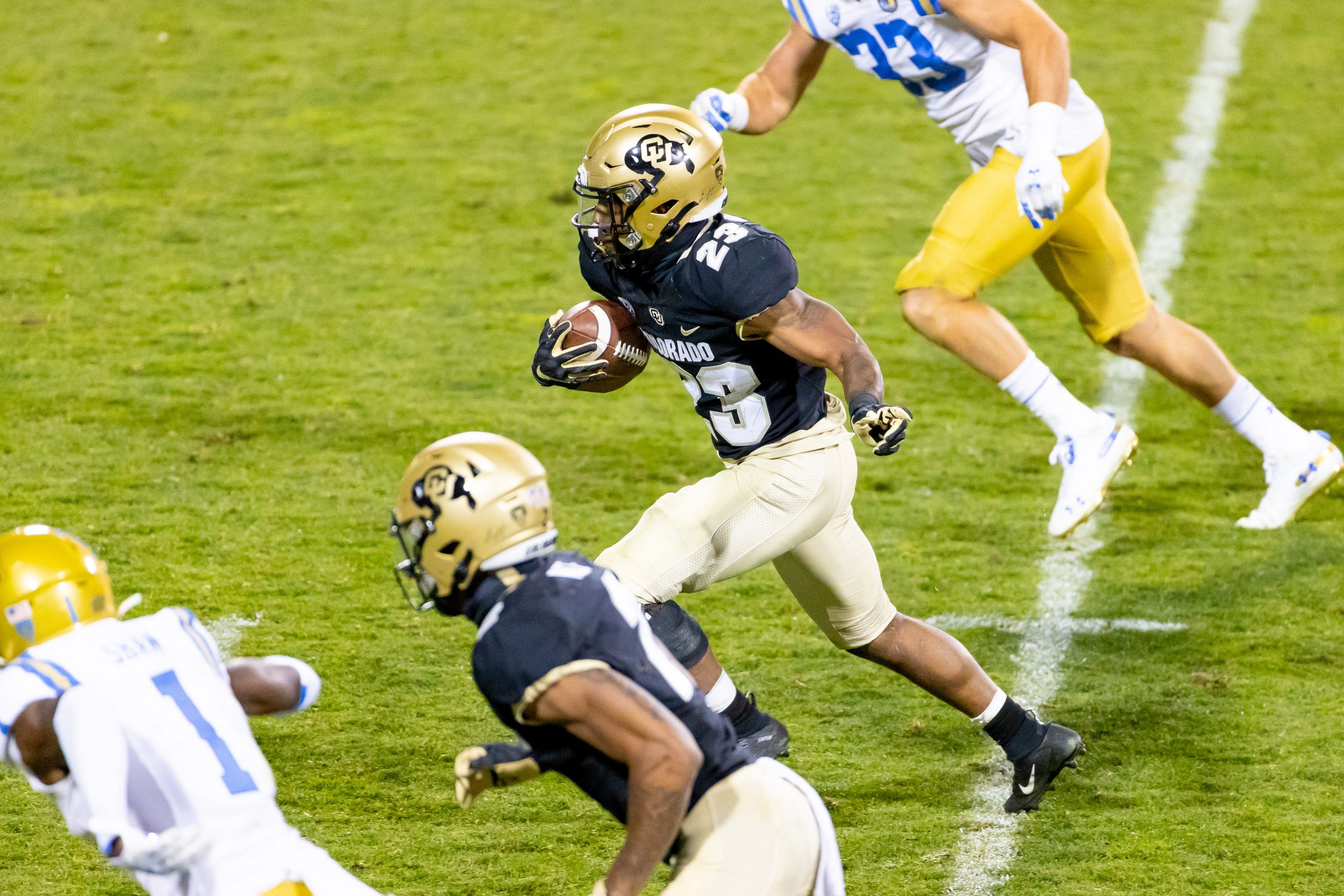 With only 554 scattered fans in the stands, it was unknown how the Buffs would generate energy early. CU received the opening kickoff and after an unsuccessful first drive, senior safety Derrion Rakestraw leaped on the UCLA punt returner and punched the ball loose to get CU the ball back. That was all the juice Colorado needed. Offensive coordinator Darrin Chiaverini used the special team’s gas to rev up Broussard”s engine.