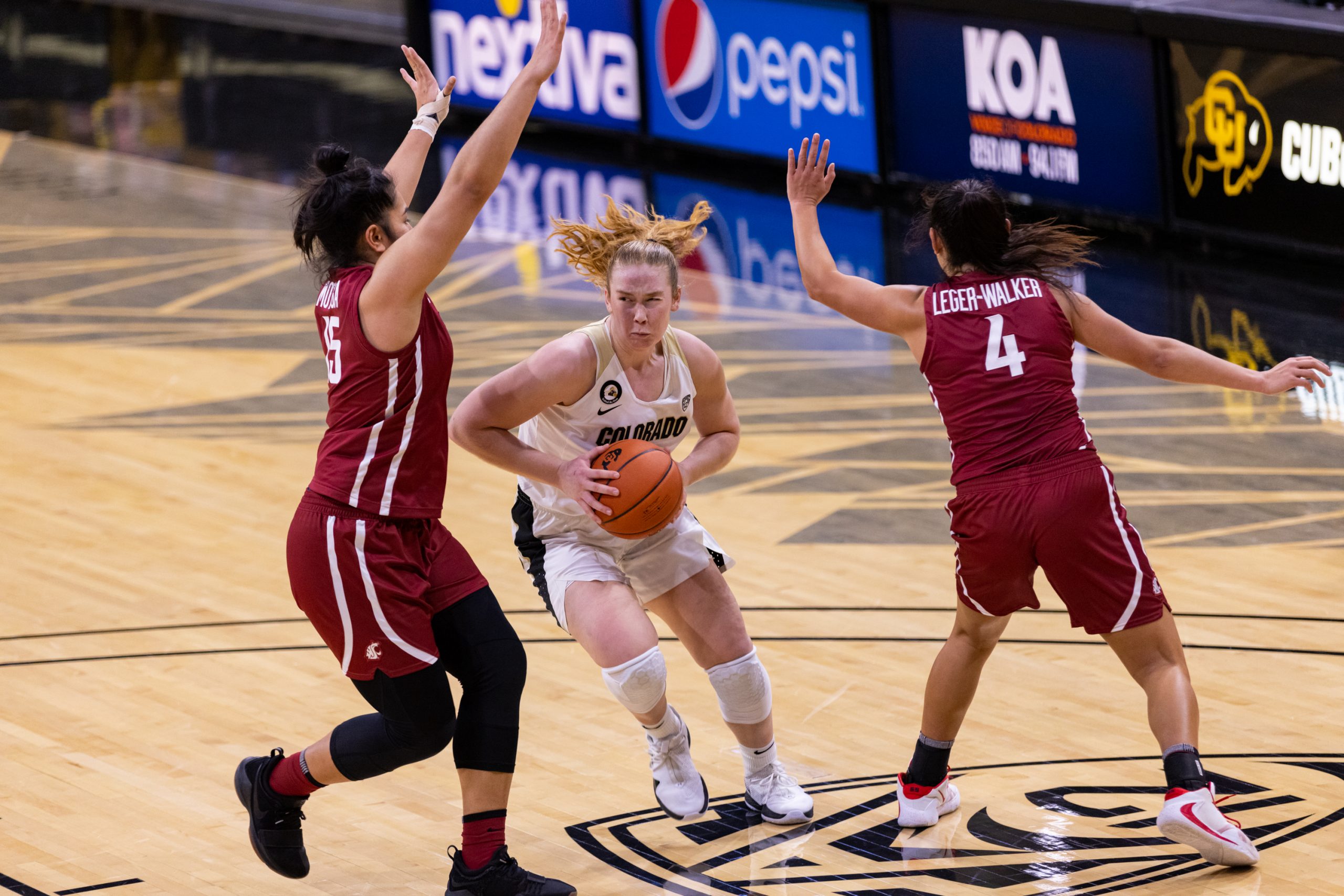 Facing off against the Pac-12’s surprise team, the Colorado Buffaloes women’s basketball team fell to the Washington State Cougars, 76-63 Sunday afternoon at the CU Events Center. Colorado’s defense allowed a season-high 54% shooting effort and dropped to 4-5 overall and 2-4 in the Pac-12. WSU was picked to finish last in the Pac-12’s preseason media poll but is now 4-1 in conference play.