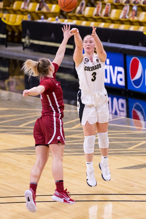 Coming off a 60-50 victory over Washington on Friday, a weekend sweep of the Pac-12’s Washington schools appeared hopeful early on. Sophomore point guard Jaylyn Sherrod nailed a three-pointer and a layup to give CU an 8-4 lead five minutes into the game. CU’s lead was short-lived, however, as WSU ended the quarter on an 11-0 run. Entering the second quarter, WSU stretched the run to 16-1 and led the Buffs 20-11. Head coach JR Payne said it was difficult to come back after a “sluggish” end to the first quarter.