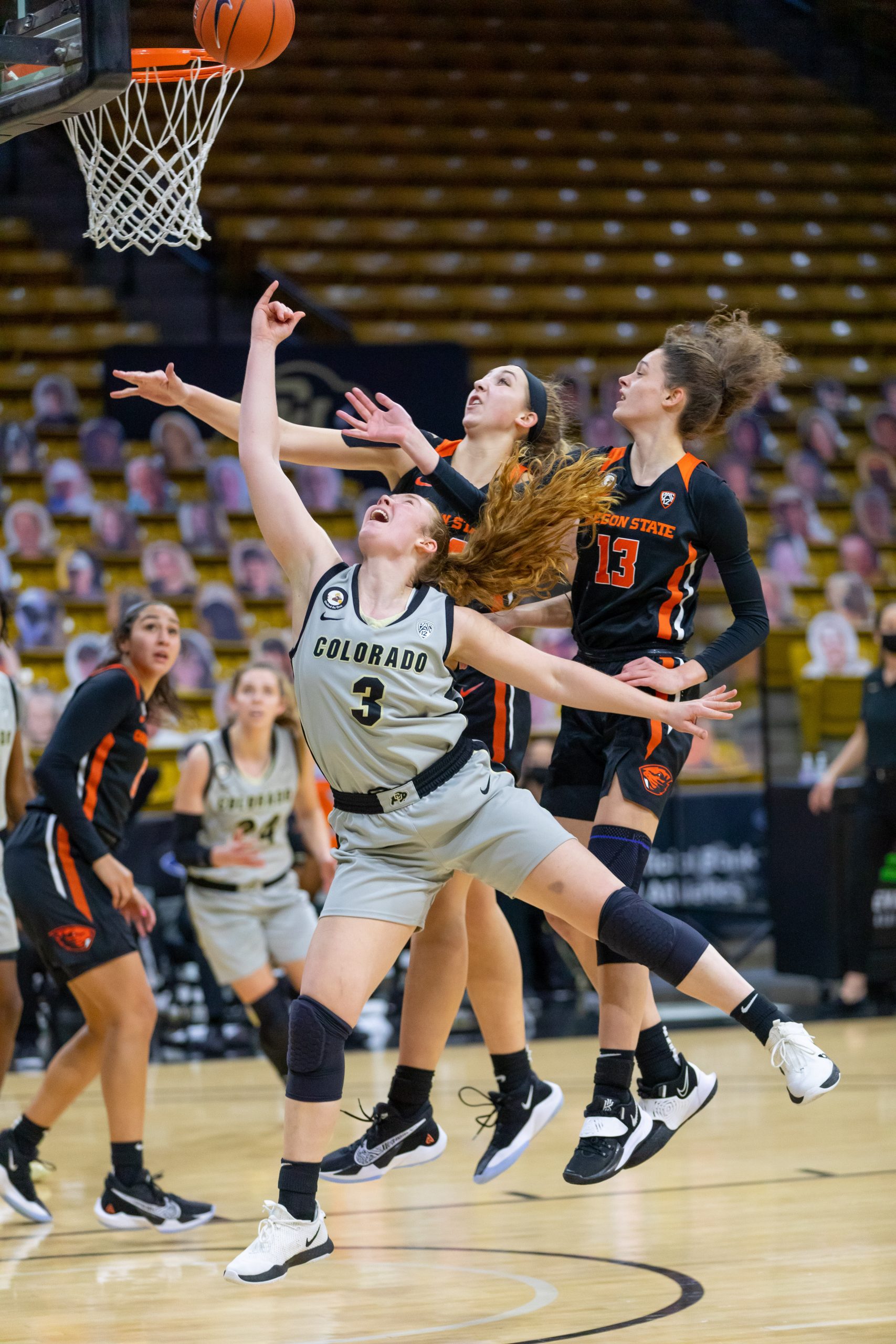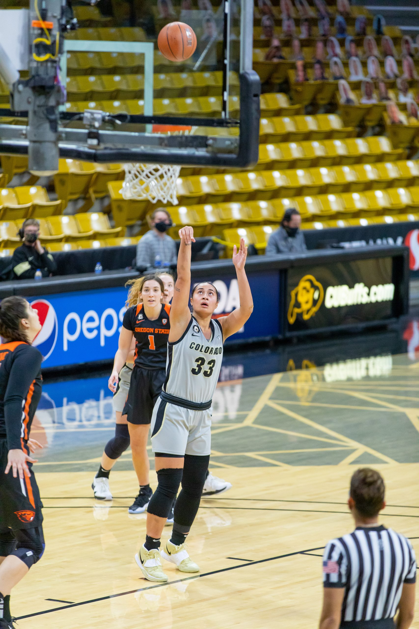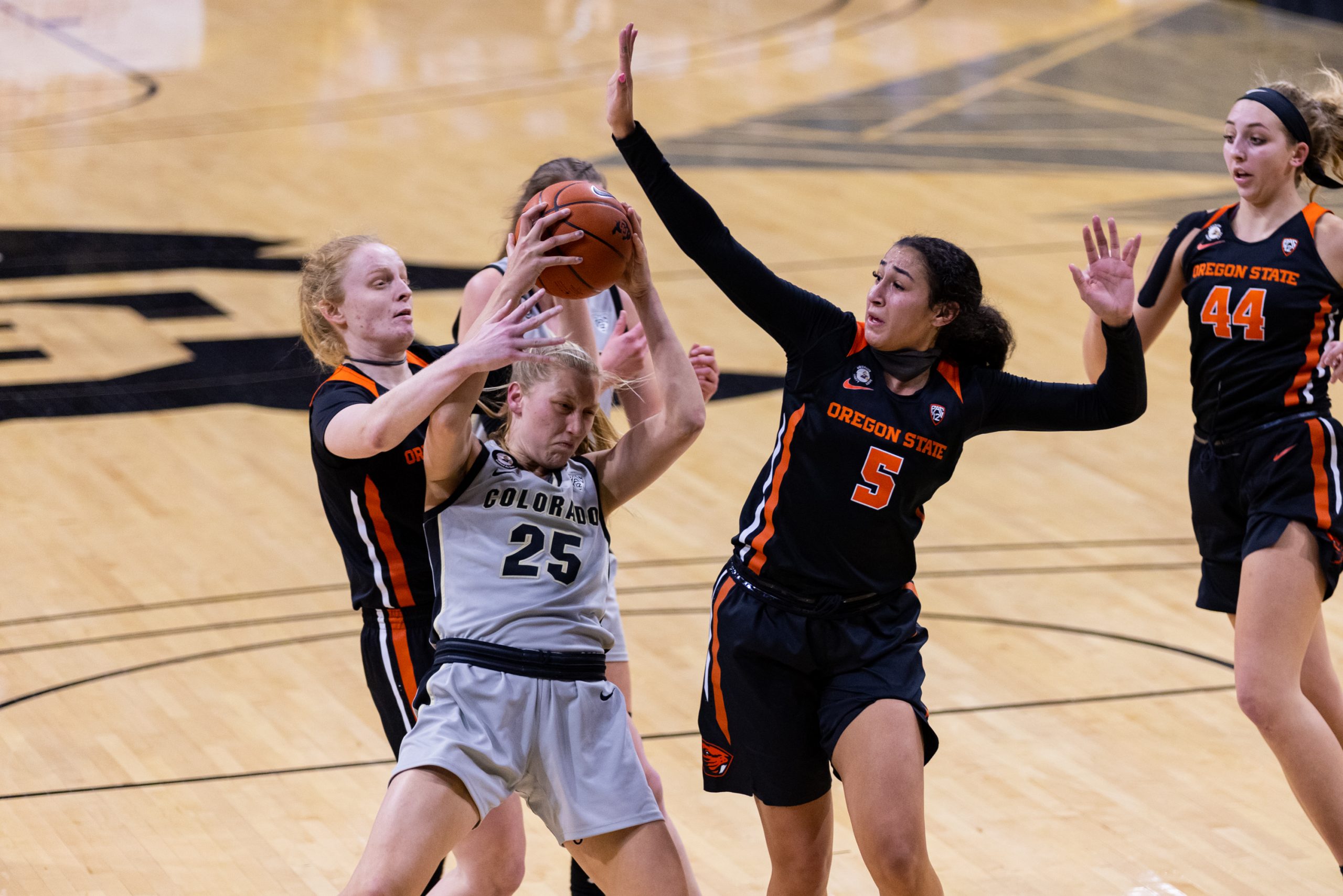 Two games removed from an upset victory over No. 1 Stanford, Colorado (6-7, 4-6 Pac-12) returned home to CU Events Center to host Oregon State (4-5, 2-5 Pac-12). The Colorado Buffaloes looked to right the ship Friday night after falling to the Sun Devils in Tempe a week ago. Recent postponements because of COVID-19 forced a seven-day hiatus in between games for the Buffaloes. Colorado fell 72-64 to the Beavers after a critical opening stretch in the final quarter.