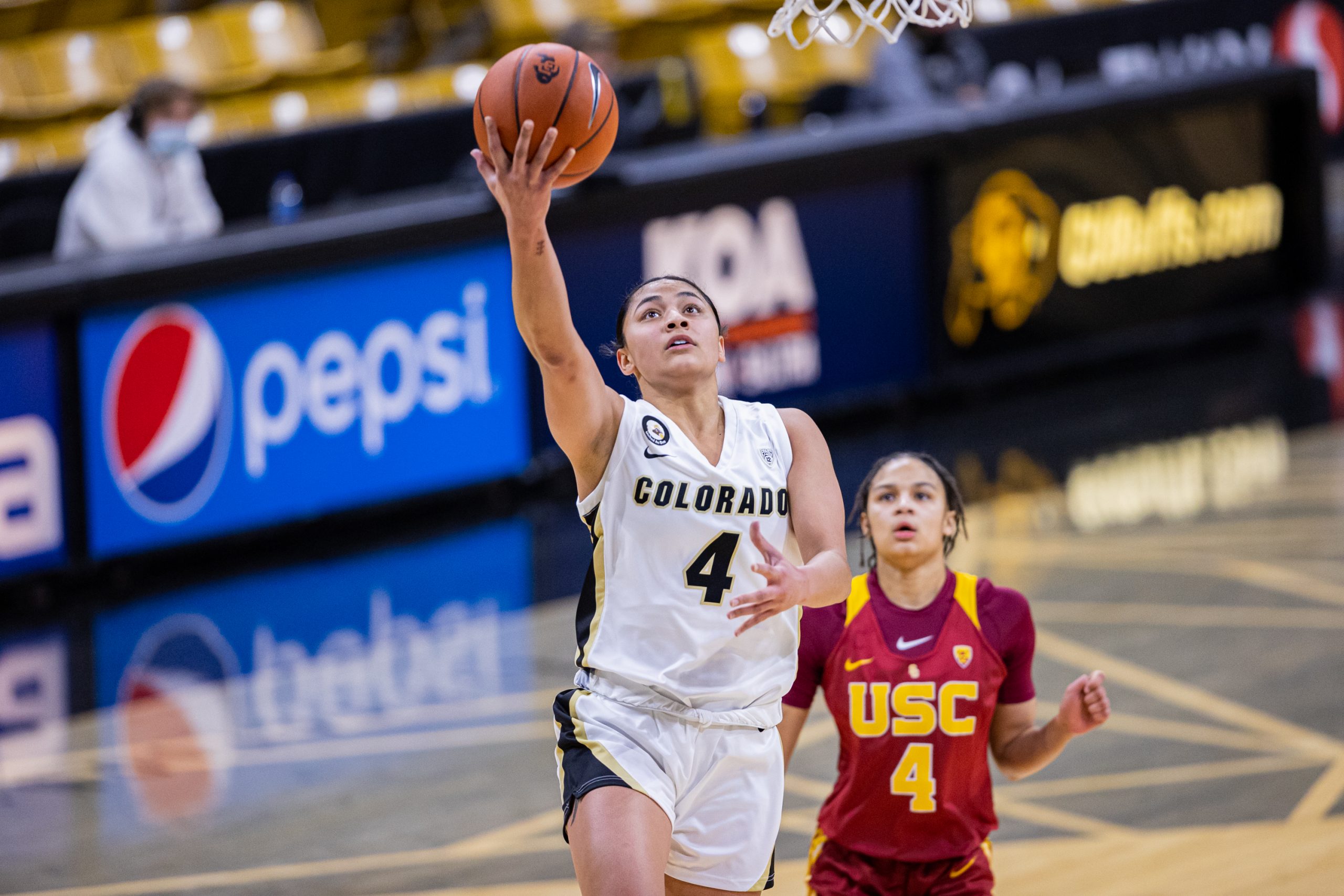 Following a split on their road trip to the California schools, the University of Colorado women’s basketball team hosted the University of Southern California at the CU Events Center in Boulder. After a victory over the winless Cal Bears in Berkeley, Colorado faced a tougher test Friday night. The Buffs downed USC 66-56 after a back and forth battle, before pulling away late in the final frame.