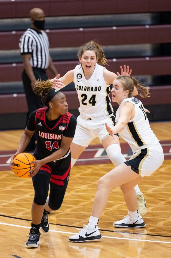 In the first half, junior forward Peanut Tuitele led the way with eight points and seven rebounds while freshman guard Frida Formann added nine points of her own from behind the arc. CU shot 6-10 from deep and dominated the glass, outrebounding the Ragin Cajuns 23-13. Colorado controlled the pace of play and led by 11 going into the locker room.