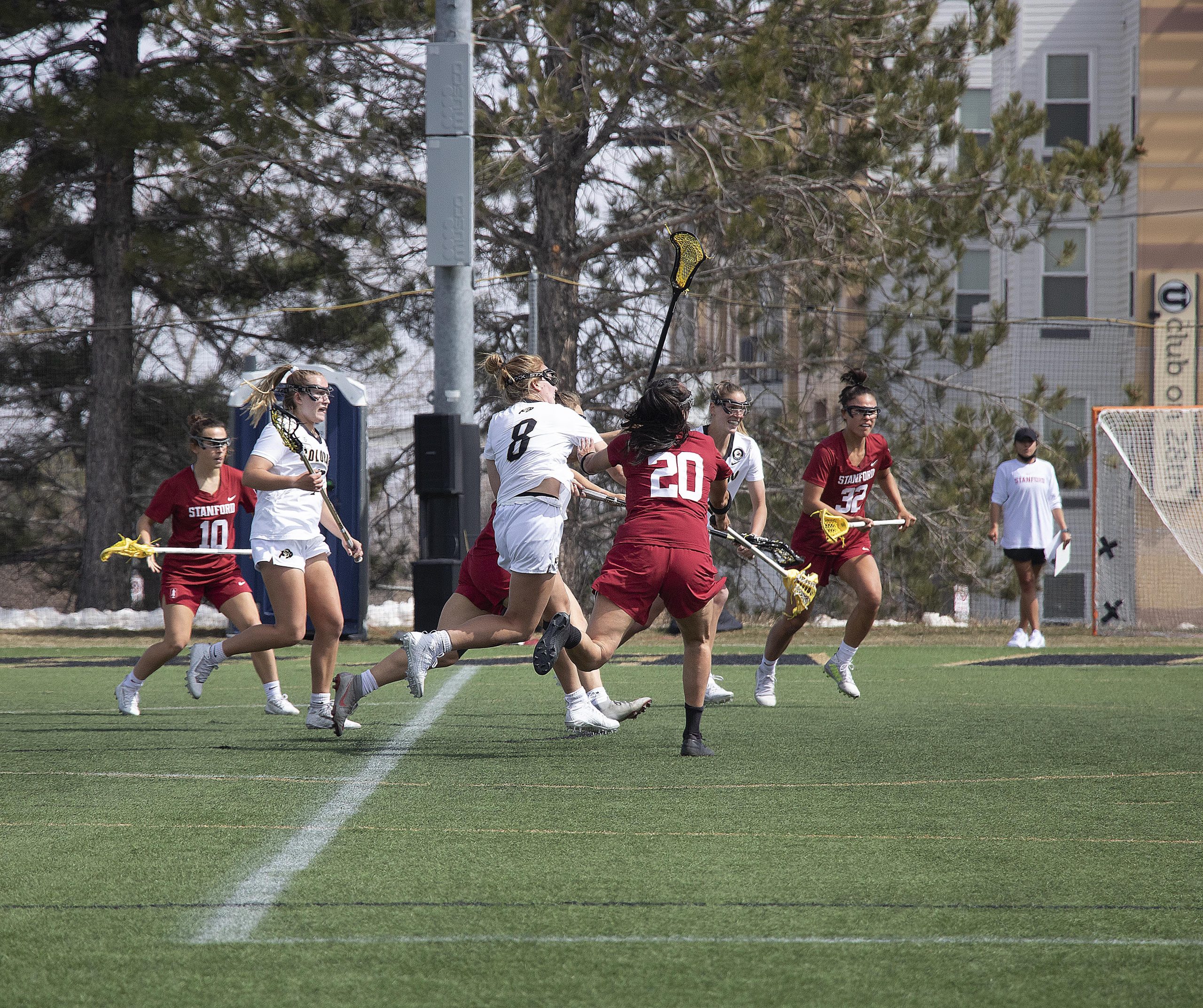 Two Stanford goals gave some momentum to the Cardinal, but with under 1:30 left in the game and the ball in the offensive zone with a full 90-second shot clock, it appeared the Buffs would be able to hang on to the win. In desperation, the Cardinal pulled their goalie to try and force a turnover. After a few physical plays resulting in fouls, Stanford’s desperation tactics paid off as Stanford created a turnover and marched the ball downfield to score with 22 seconds remaining to tie the game at nine.