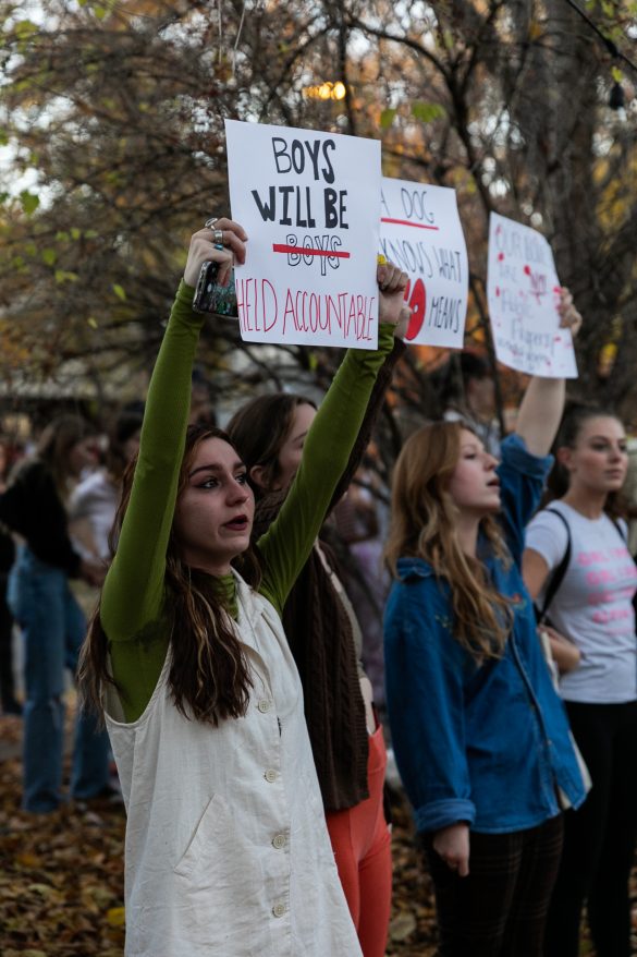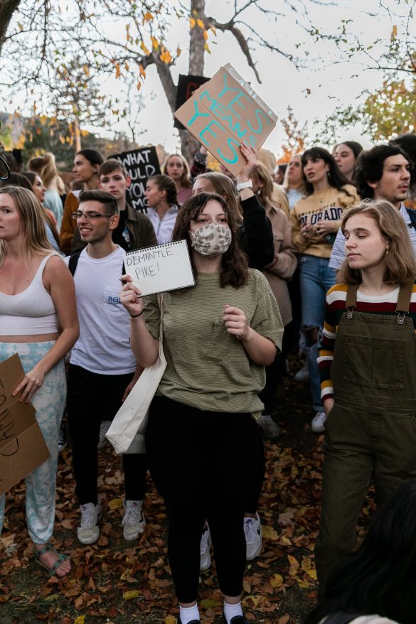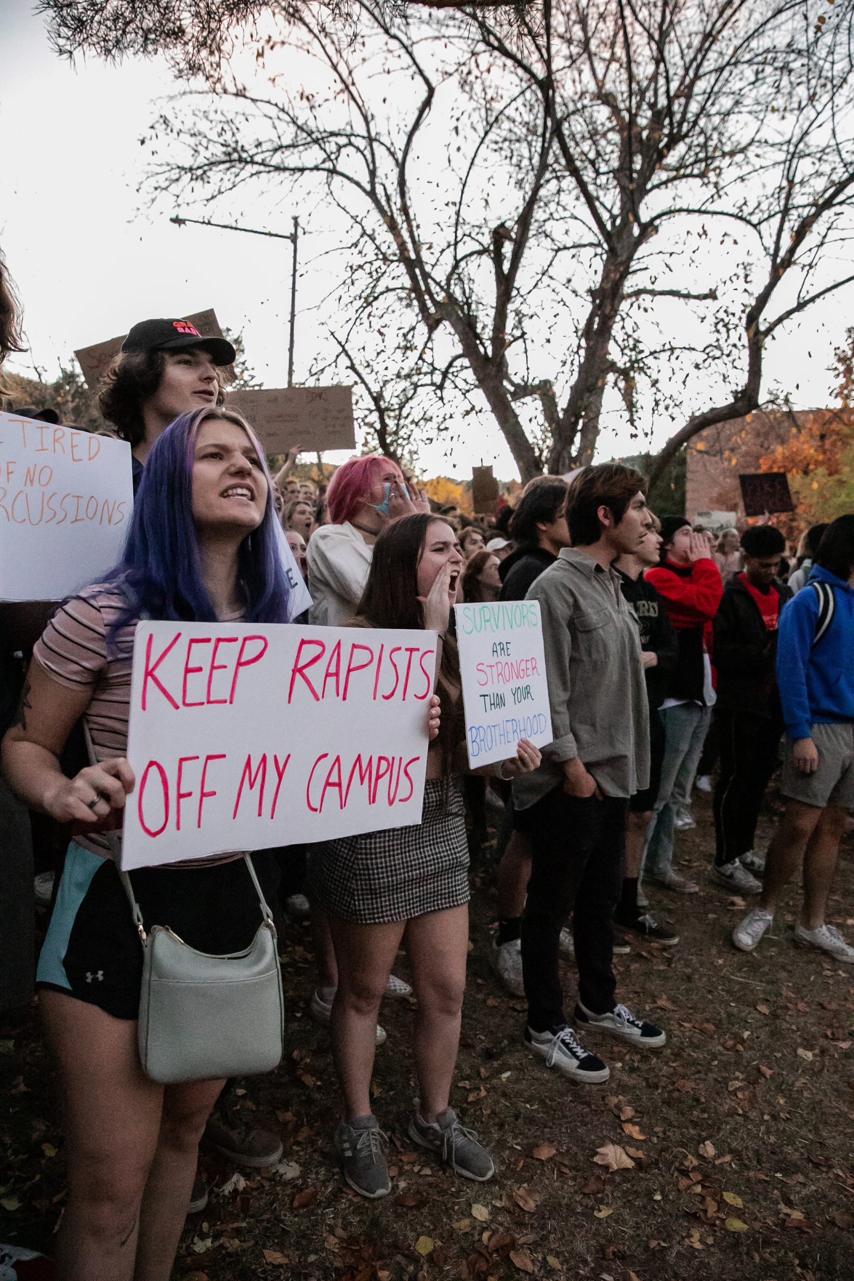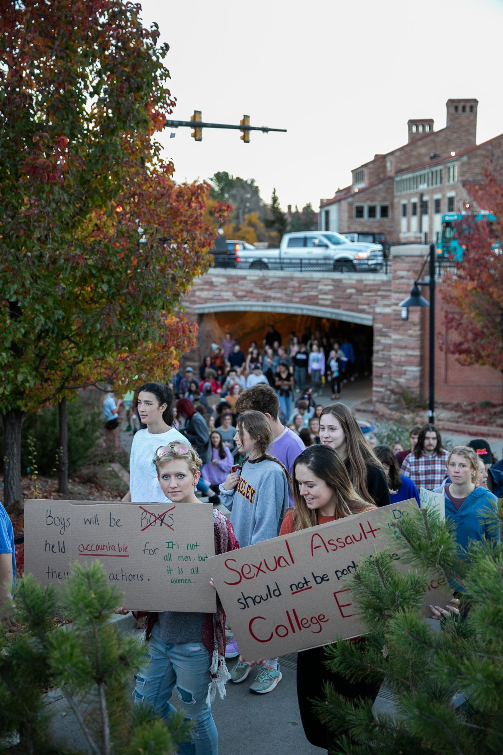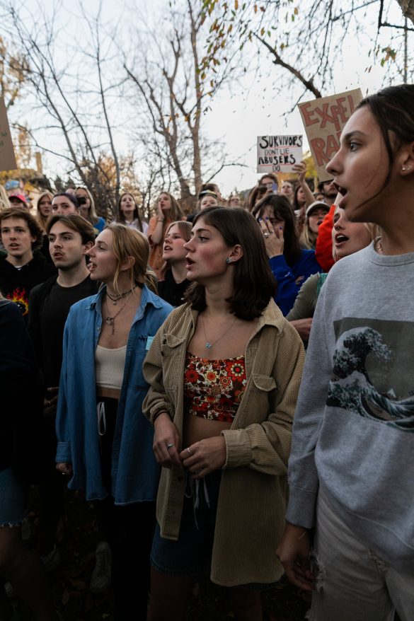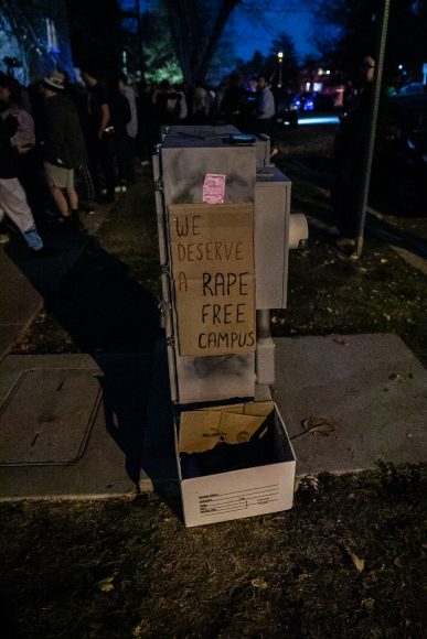 On Friday, Nov. 5, hundreds of students gathered at Phi Kappa Alpha to protest alleged sexual assaults. The protest began at an underpass between Kittredge Central and CU’s Center for Community at 5:30 pm and made its way down Broadway towards Phi Kappa Alpha.