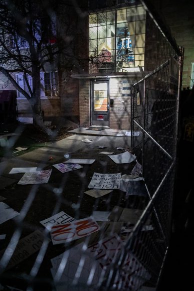 Shortly after the police left, students began leaving their signs across the front lawn and dispersing.
