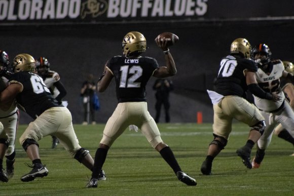 Freshman quarterback Brendon Lewis gets ready to throw a pass on Nov. 6, 2021. (Brett Robinson/CU Independent)