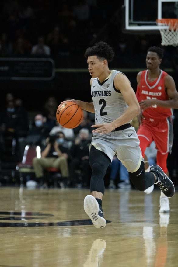 Besides the turnovers, the Buffs had a tremendous game from a fundamental standpoint. CU outrebounded the Lobos 47-27, limiting them to only eight second-chance points. The staggering rebounding difference was primarily due to freshman guard KJ Simpson’s tenacity on the glass, hauling in eight boards, including two offensive rebounds. When asked about his freshman point guard’s rebounding night, senior forward Evan Battey referred to a recent CU legend.