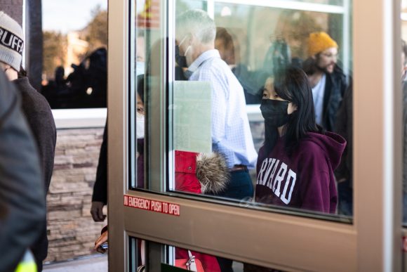 A person looks ahead as they enter the remodeled King Soopers in Boulder after the re-opening ceremony on Wednesday, Feb. 9, 2022. (Io Hartman/CU Independent)