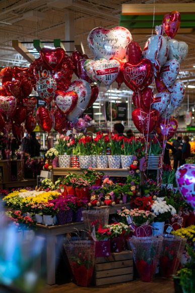 Pictured: one of the many Valentine’s Day displays inside the remodled King Soopers in Boulder. Taken on Wednesday, Feb 9, 2022. (Io Hartman/CU Indpendent