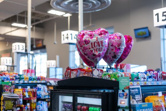 Valentines Day ballons lined the checkouts of Boulder’s King Soopers during the reopening ceremony of the store on Wednesday, Feb 9th, 2022. (Io Hartman/CU Independent)