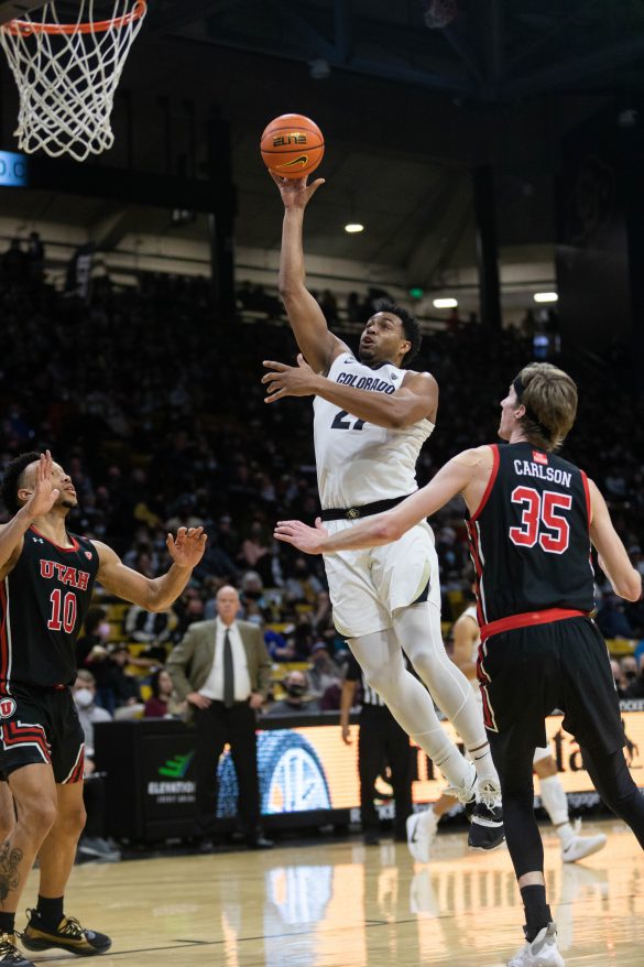 The Buffs began the game slowly, finding themselves down eight to nothing in the early going. Utah Center Branden Carlson was the driving force behind the Utes in the first half. Carlson had a huge first-half shooting 9-12 from the field and 2-3 from three-point range. He finished the half with 21 points in only 16 minutes.