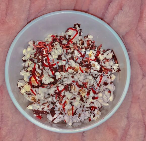 If you need to whip up a quick, delicious treat for your Galentine’s Day festivities, try this popcorn with a makeover. Depending on how large your gathering is, you can make enough for a single bowl or an entire bin full of popcorn with pink and red vibes.