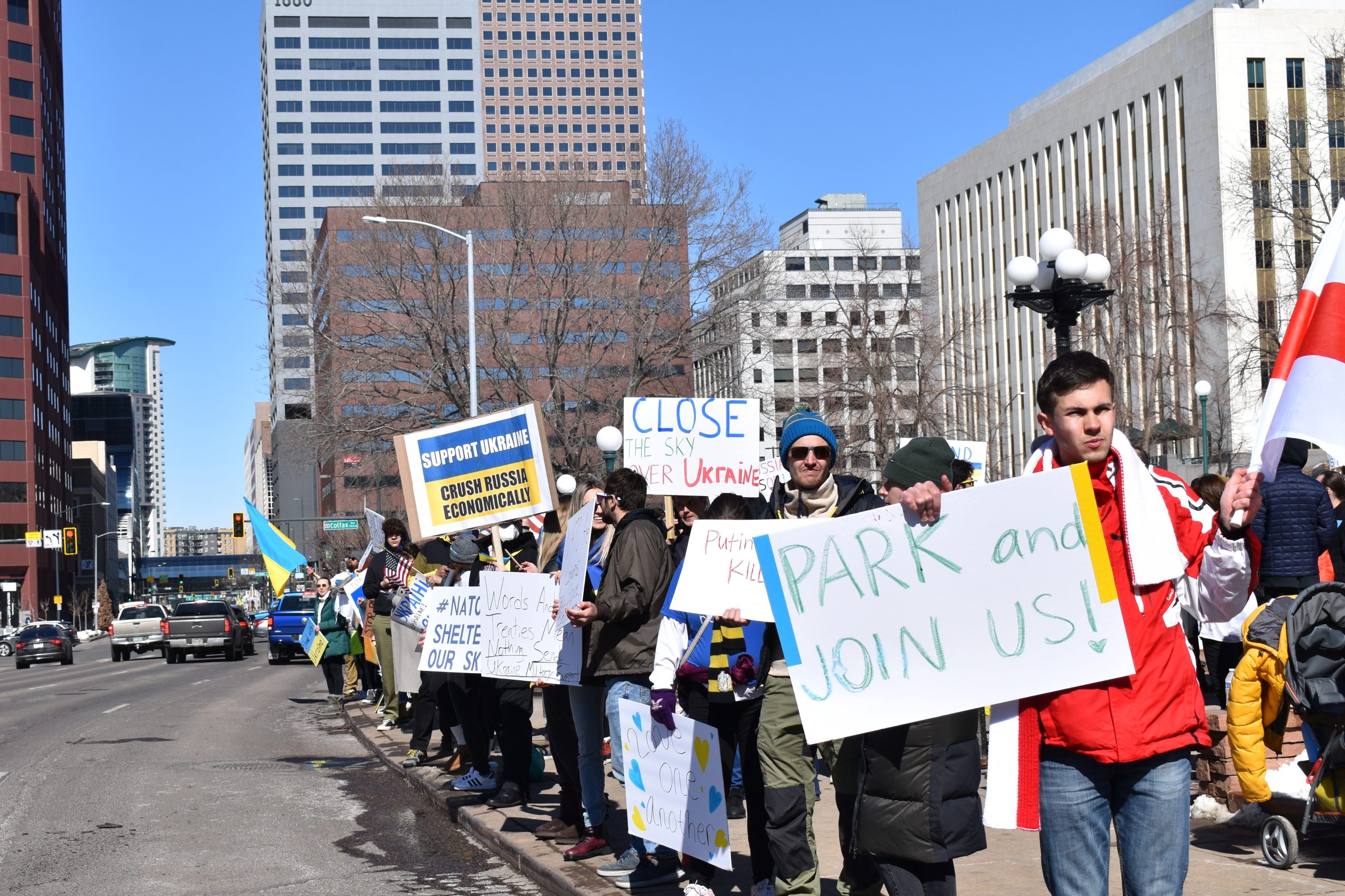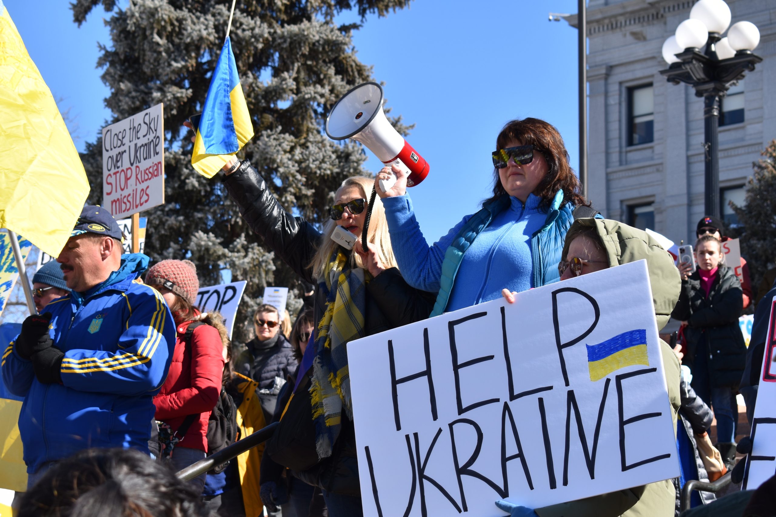 Ukrainians rallied outside the Colorado State Capitol on Saturday while Russian forces pushed forward in an attempt to capture the country’s capital, Kyiv.