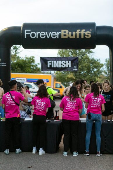 Once they reached the finish line, students were greeted with applause, followed by a glass of water. After all of students had returned to Koenig, the after-party began. Students celebrated their one-mile victory for charity by dancing to live music and socializing with fellow Buffs.