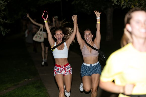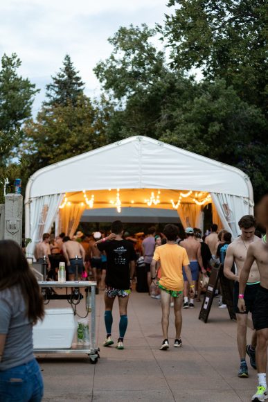 Students cheered as they finished their run for the Nearly Naked Mile through CU Boulder’s Campus on Thursday, Sept. 29, 2022. (Io Hartman/CU Independent)
