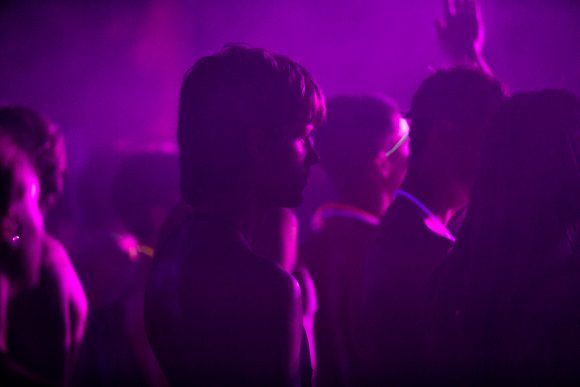 A student stood amongst others dancing during the after party of the Nearly Naked Mile on Thursday, Sept. 29, 2022. (Io Hartman/CU Independent)