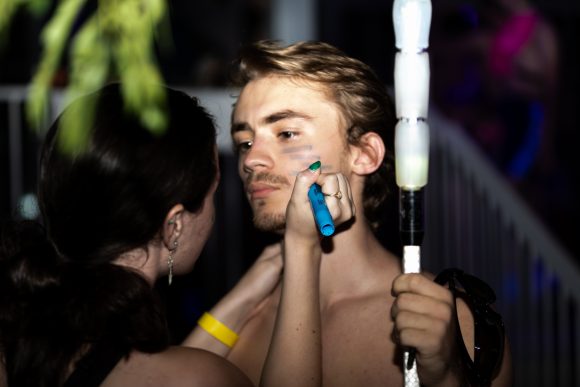 The party included a live DJ set, food catered by Boss Lady Pizza and pop-up stands, where volunteers handed out Celsius and Red Bull drinks, immunity shots, glow sticks and body paint.