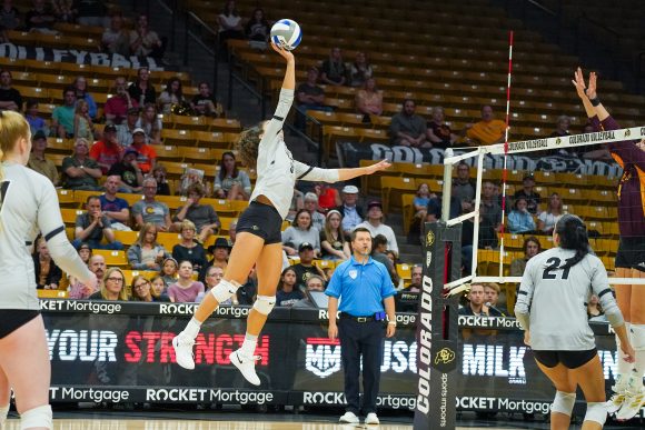 Then, for the game’s final moments, the Buffs picked up momentum, ending the set with a four-point scoring run. Junior Maya Tabron led the team in kills, with 12 total for all three sets. Reflecting on the close wins for the last two sets, Tabron said that she believed the team pulled though by relying on “swinging high and covering.”