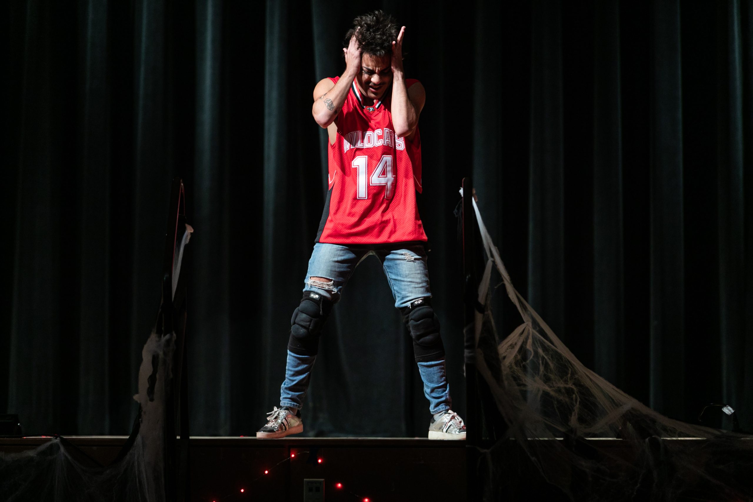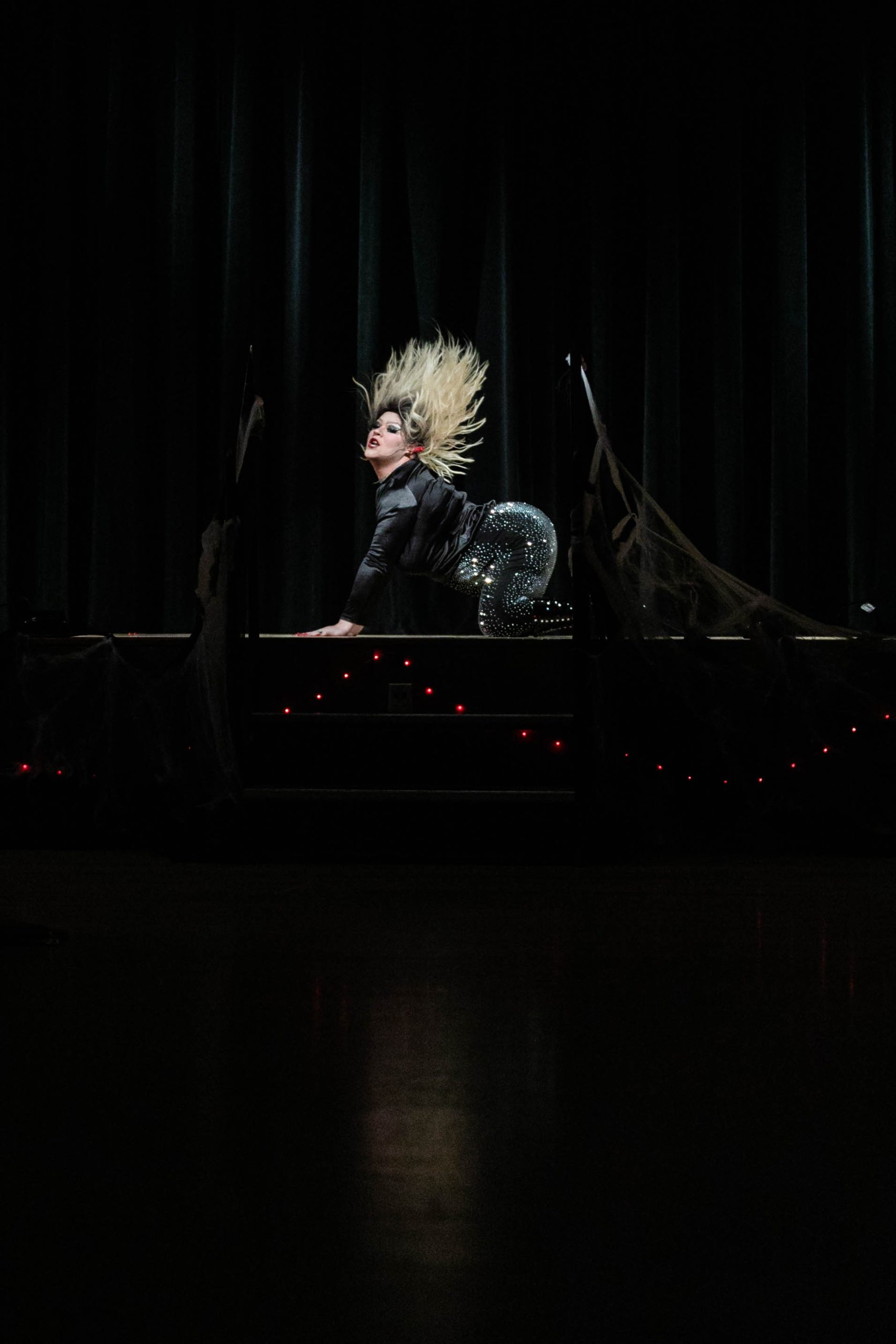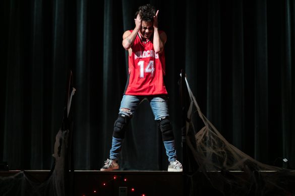 The other performers presented costumes and performances across the spectrum of spooky. Madonna Horowitz dressed as a leather-clad grim reaper with a mini scythe, her bloody chest and face covered with spiders. Little Meow Meow, a self-described “sexy Garfield” with orange kitty ears, a tail and a leather collar, writhed onstage to a very explicit song. Park danced in a classy all-black outfit along with the groove of Hozier’s “Take Me To Church.” King Vaughnz Spanic played the role of the boyband heartthrob. Swaggering around in a sleeveless red sports jersey and baggy jeans, he lip-synched his heart out to an angsty rock song and dropped to his knees for an epic solo on a tiny, red blow-up guitar.