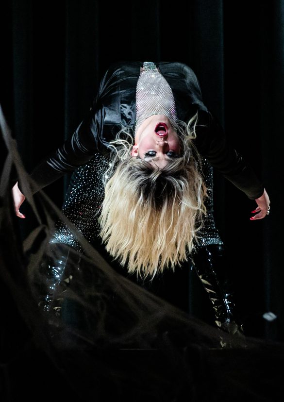 To finish the show, Kat Danger, a professional Denver-based drag queen, performed her signature flashy routine. With her scintillating outfit, knee-high leather boots and voluminous blond wig, Kat Danger danced sensuously and performed impressive acrobatics, including full splits, handstands, cartwheels and backbends.