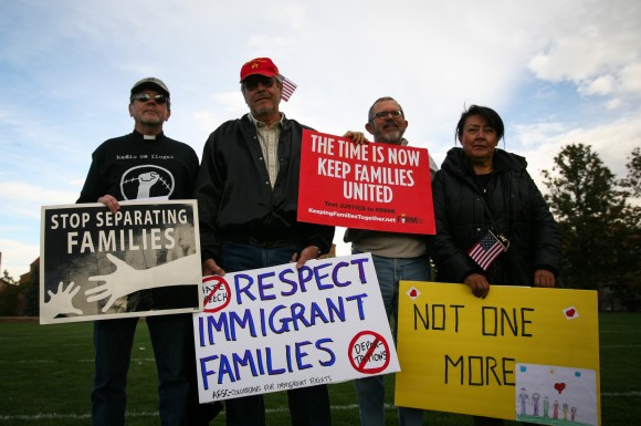 Men and women gather with signs on Farrand Field on the CU campus for the immigration rally before the GOP debate tonight in Boulder.(Oct. 28, 2015)(Danny Anderson/CU Independent)