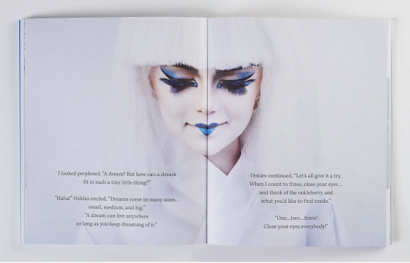 Using elaborate costumes, makeup and sets, George animated the storyline through a series of dynamic photos. He decided to use a limited color palette, consisting of white, black, blue and gold, to create an otherworldly atmosphere.