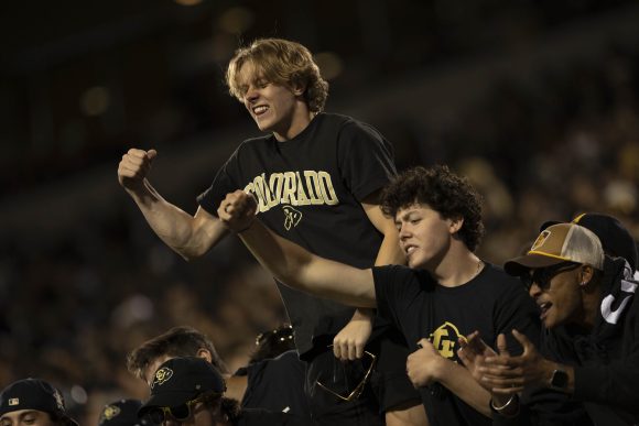 CU students show their support for the Colorado Buffalos during the game against Colorado State University on Saturday Sept. 16, 2023. (Clementine Miller/CU Independent)