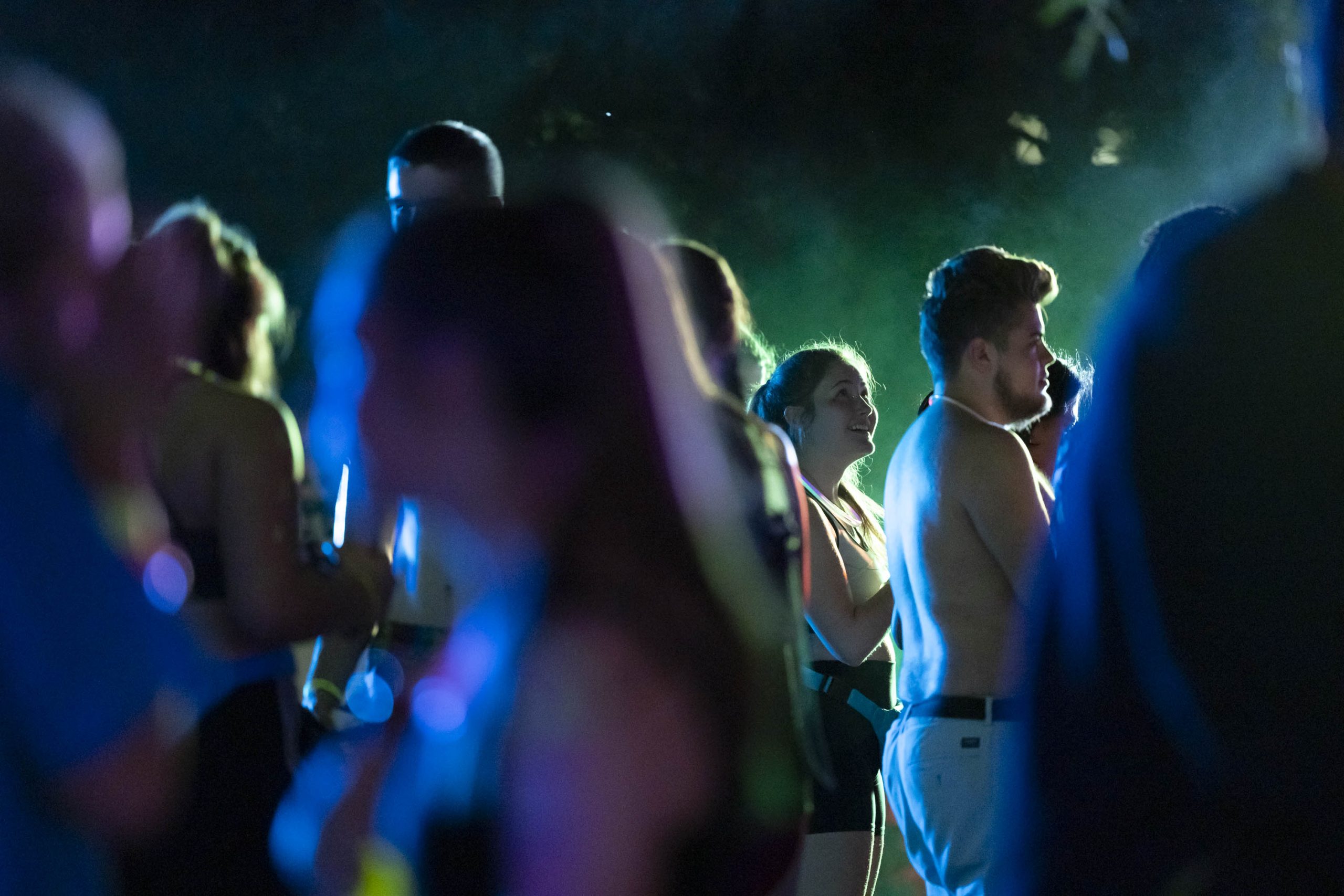 After finishing the run, students returned to the yard for the afterparty, where there was a live DJ, food and merchandise. Students ate, danced and talked to one another in the colorfully lit and foggy yard for a little over an hour, before getting dressed and leaving. Over 1,000 pieces of clothing were collected to donate during the event according to members of the Herd Leadership Council.