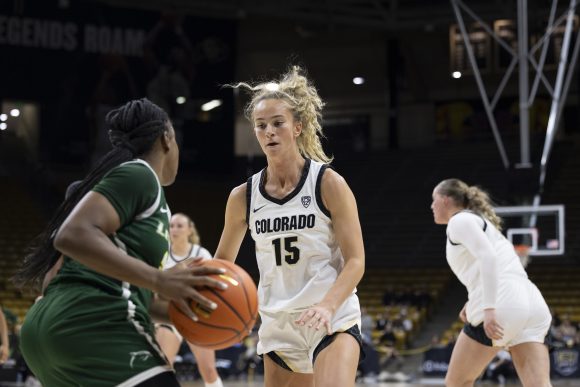 The Buffs did more of the same in the second half, going on a 17-0 run midway through the third quarter that lasted over four minutes long. Head coach JR Payne gave all her players some game action and got everyone’s feet wet. Maddie Nolan, a graduate student guard from Indiana, had an underrated night off the bench as she drilled five three-pointers for a total of 15 points. On top of her excellent offensive showing, Nolan added some sensational defense as well.