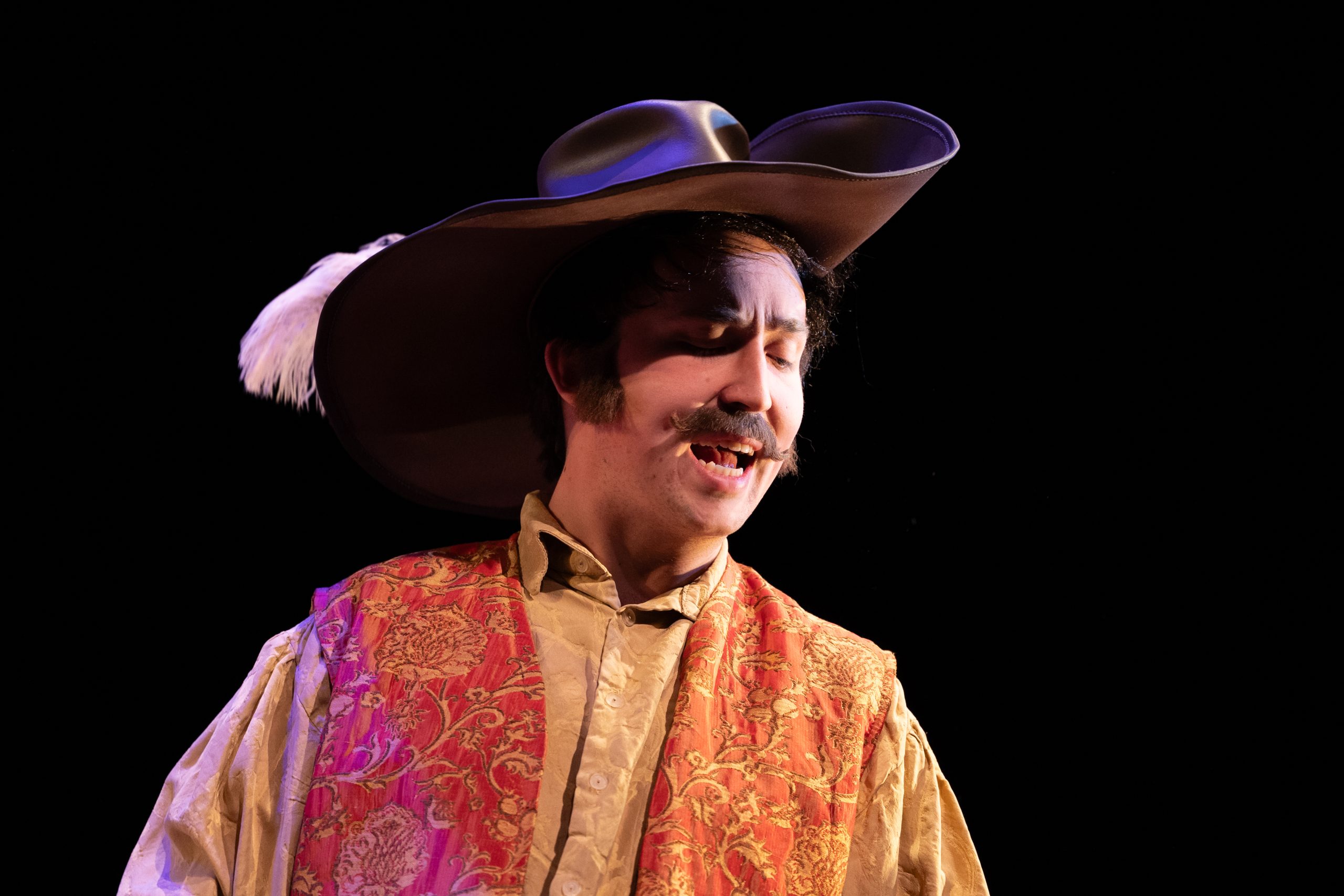 Marcus Schaller playing Sodbuster sings during a dress rehearsal of “Proving Up” by Missy Mizzoli for the University of Colorado Boulder’s “American Stories by American Women” performance in the Imig Music Building Music Theatre on Monday, April 22, 2024. (Clementine Miller/CU Independent)