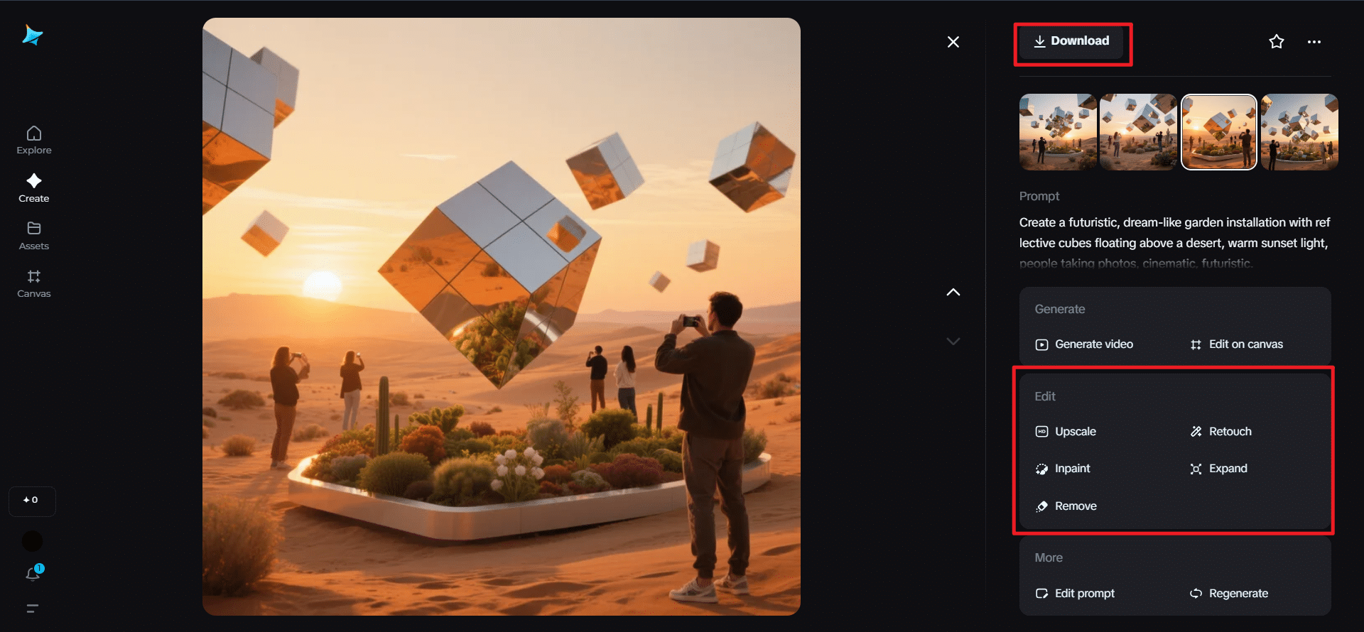 Once you visualize your picture, you may wish to edit it. Dreamina has inpaint to update details and expand to create breathing room; it has remove for distractions, and retouch for color or light. Once you are satisfied, you can probably tap the Download icon to save it. So, what did you get? A digital rendering of a place that hasn’t yet been built.