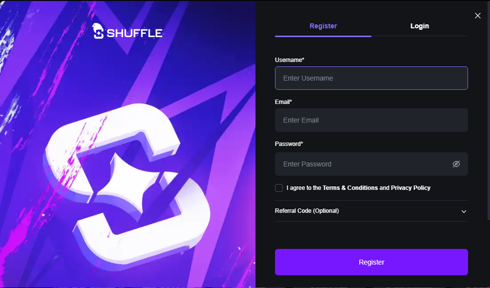 The Shuffle affiliate system is open to all users. To join, you first need to register an account with the code “CSGOBETTINGS”, after which creating your own Shuffle referral code link becomes available in your profile.