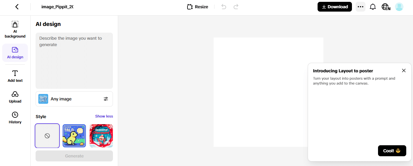 Different platforms require different formats. With Pippit, you can instantly adjust your ad poster using features like Instagram resize to ensure your content looks perfect across social feeds, stories, websites, and even print. Each platform has its own style and aspect ratio, so optimization ensures your ad poster never appears cropped or poorly aligned. By tailoring your design for each channel, you not only maintain visual quality but also maximize reach and engagement.