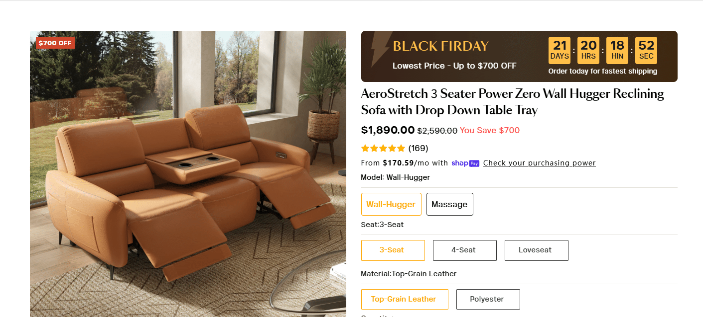 You get style, comfort, and smart features all in one sofa. The AeroStretch Power Recliner Sofa fits any modern home. You save big with the alivinghome black friday deal. You also get free shipping and a price match guarantee. You don’t have to worry about missing out on a better price. This deal helps you upgrade your living room without spending a lot.